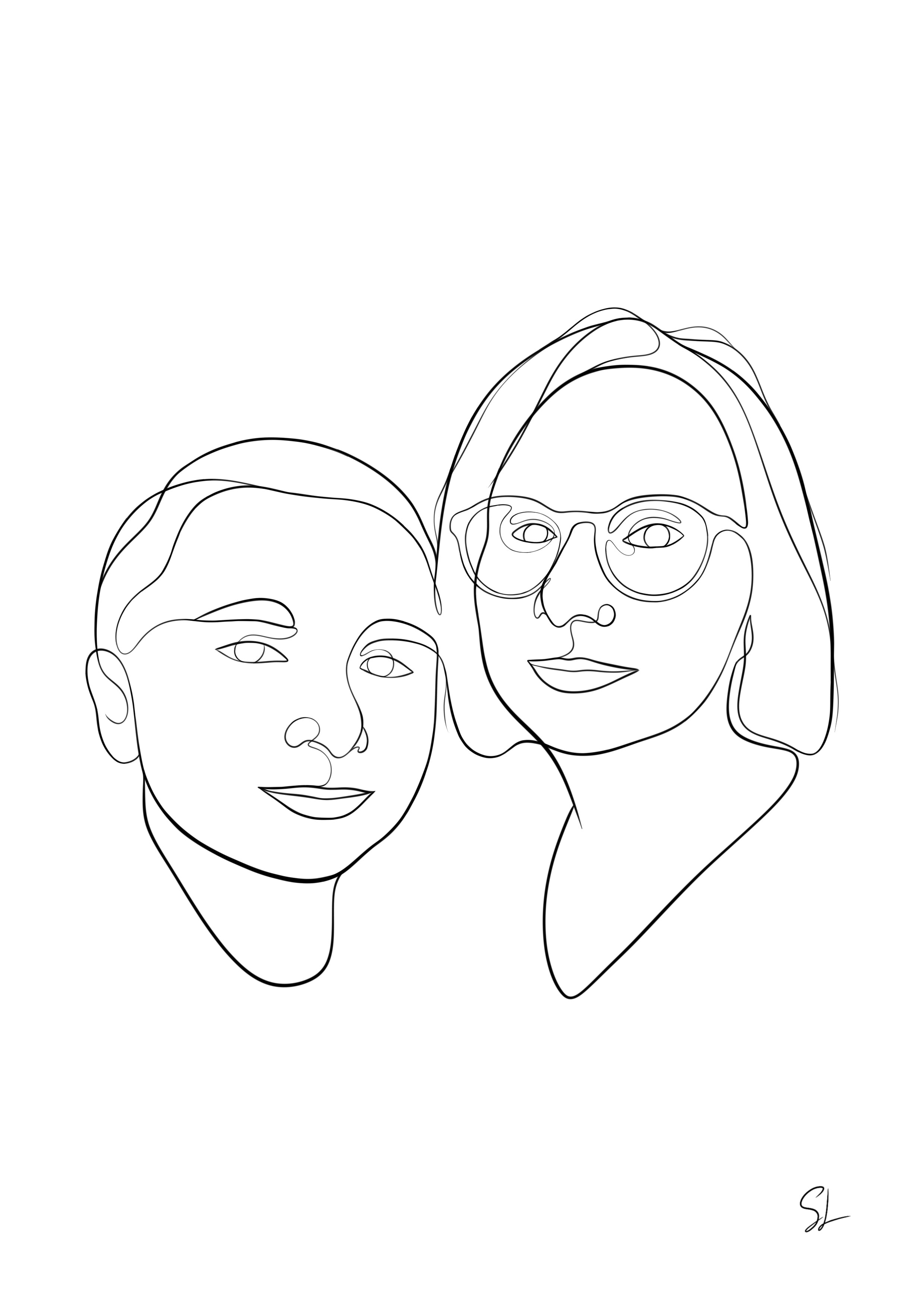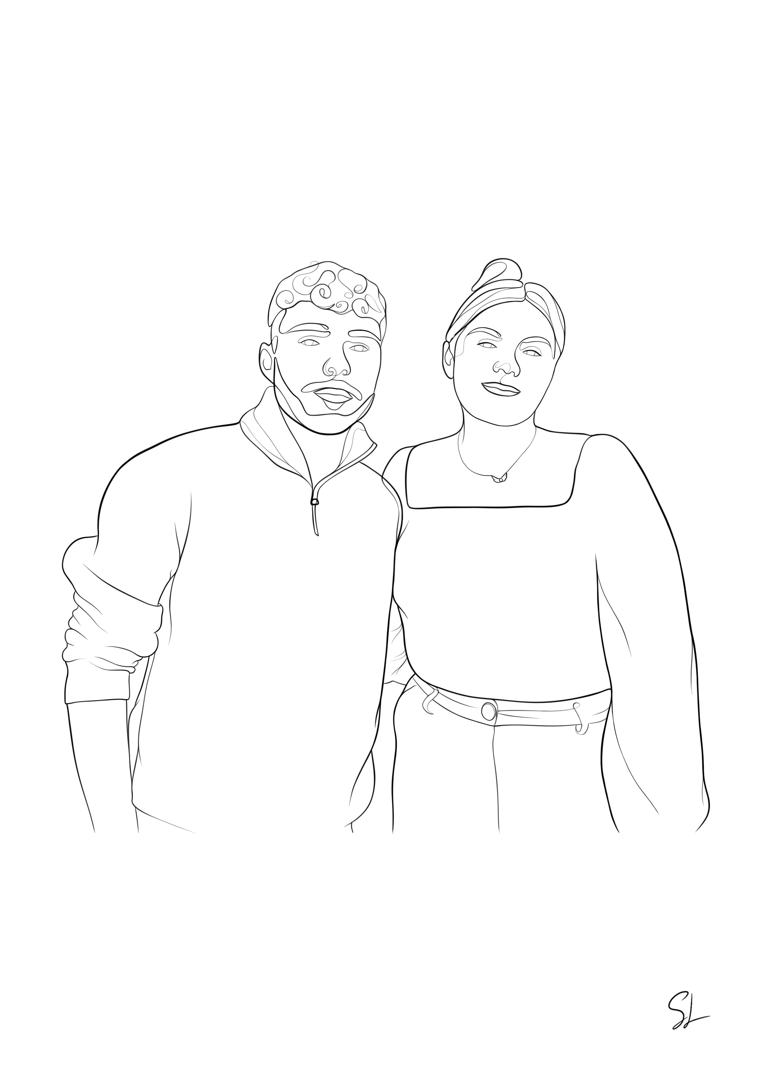 Ici, vous pouvez découvrir un aperçu de nos créations : des portraits en lineart réalisés avec soin à partir de photos de nos clients… mais aussi de portraits de célébrités, que nous avons dessinés par passion.